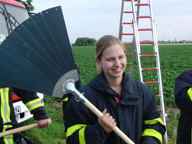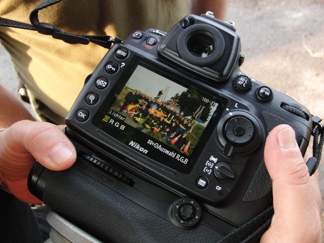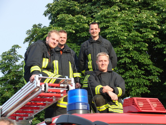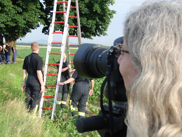 Von der Alters- und Ehrenabteilung bis zur Jugendfeuerwehr waren alle Mitglieder der Löschgruppe gekommen, um auf dem Foto dabei zu sein. Nach der Aufstellung der Fahrzeuge wurden wir dann so lange von Petra Hartmann ins rechte Licht gerückt, bis alles passte. Bei knapp 25 Grad Außentemperatur an diesem herrlich sonnigen Tag kamen vor allem die Aktiven in der Feuerwehr-Schutzkleidung ordentlich ins Schwitzen.