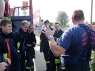 Schlange stehen an der Kaffeekanne.Gut gestärkt für den Einsatz folgte dann eine kurze Einweisung in die zwei für diesen Tag geplanten Übungen, die Einteilung der Fahrzeuge und die Bekanntgabe der geplanten Alarmierungsreihenfolge. Im Aufstellungsraum angekommen nahm auch der Funkverkehr auf dem bis dahin stillen Übungskanal 489 langsam Fahrt auf. Der Fernmeldedienst der Feuerwehr Köln exerzierte die Funkprobe, es meldeten sich etliche