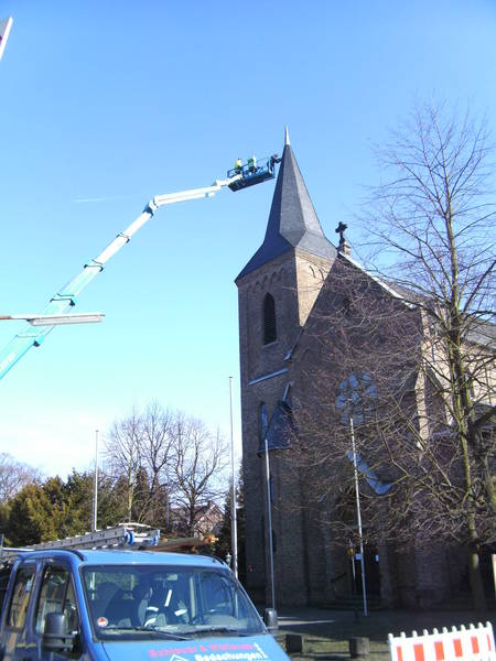 Das abgerissene Kreuz der Kirche in Libur ist mit den Mitteln der Feuerwehr nicht effektiv zu bergen, auch eine Drehleiter reicht nicht aus.Die weiteren, für einen Sturm typischen Einsätze, verteilten sich auf die Stadtteile Porz-Langel, Wahn, Eil, Neustadt Nord, Rodenkirchen, Mülheim, Deutz, und Altstadt Nord. Die Aufgaben für die Löschgruppe lagen dabei ebenfalls im gewohnten Bereich. Neben der Navigation zu den einzelnen Einsatzstellen, die an sich schon mal zu einer Herausforderung werden kann, wurden Bäume gesägt, Bereiche abgesperrt und Anwohner informiert.
