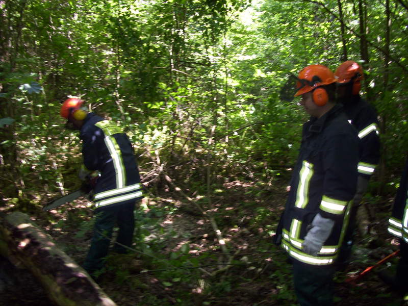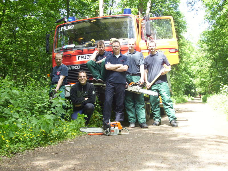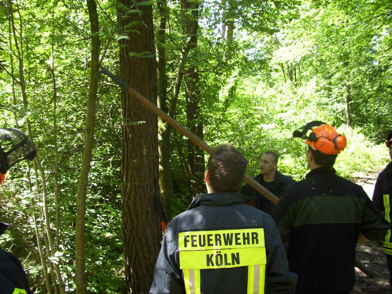 Bei den regelmäßig aufkommenden Stürmen über Köln gilt es für die Feuerwehr umgefallene Bäume, die eine Gefahr darstellen, von den Verkehrswegen zu entfernen – der sogenannte Sturmwurf. Aufbauend auf dem Grundlehrgang TH-Wald, bei dem man den Führerschein für die Motorsäge erwirbt, wird in dieser Fortbildung das sichere Entfernen von Sturmwurf behandelt. Da wir Feuerwehrleute nicht täglich mit diesen gefährlichen Maschinen arbeiten, werden solche Fortbildungen angeboten. Dieser Termin war sogar eigens für unsere Löschgruppe vorgesehen. Somit nahmen wir mit fünf Mitgliedern aus Libur teil. Der Termin war uns leider nicht sehr gelegen, da wir an der am selben Tag stattfindenden Stadtmeisterschaft in