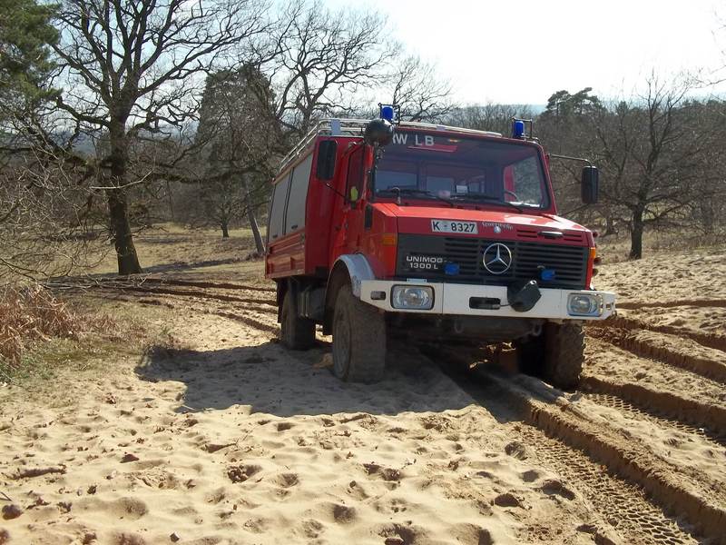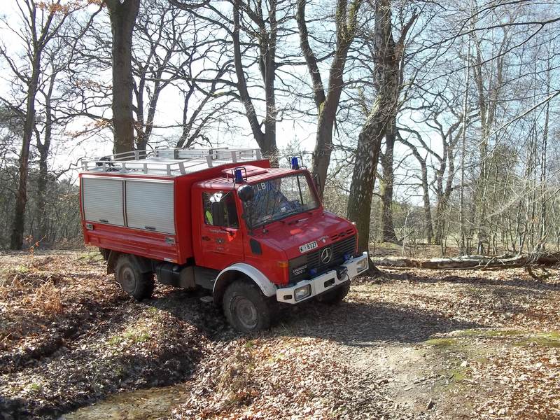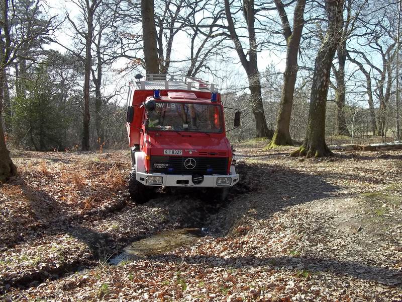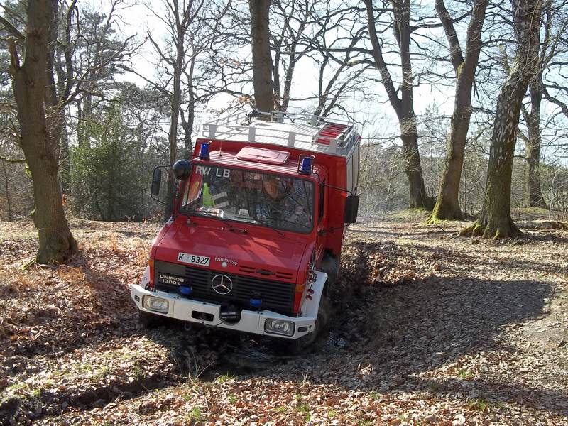 Deshalb erweitern die Feuerweheren überall auf der Welt ihr Ausbildungsprogramm. An einem dieser neuen Ausbildungsthemen der Feuerwehr Köln nahmen am vergangen Samstag das erste mal zwei Mitglieder unserer Löschgruppe teil. OBM Thomas Reiter und FM Christoph Bleffert waren Teilnehmer beim Lehrgang Fahren im Gelände, dies ist ein Lehrgang für Löschgruppen mit voll geländegängigen Fahrzeugen. So waren am 19.03. zwei Löschgruppen mit ihren LF-Unimog, sowie unser Löschgruppe mit dem Rüstwagen geladen die Fahrzeuge in der Wahner Heide an ihre Grenzen zu bringen.