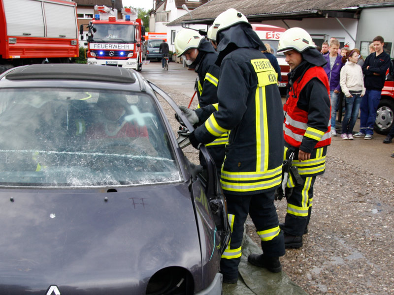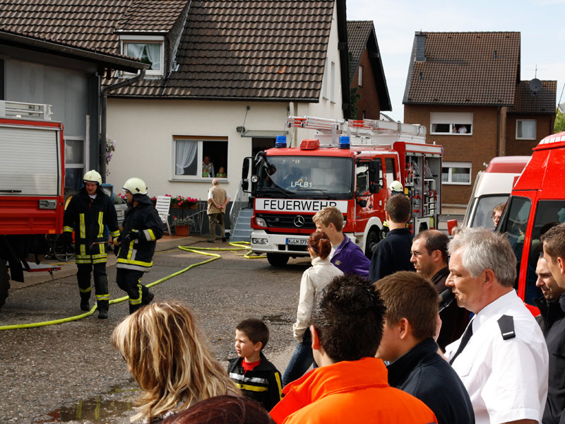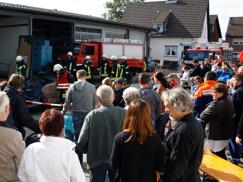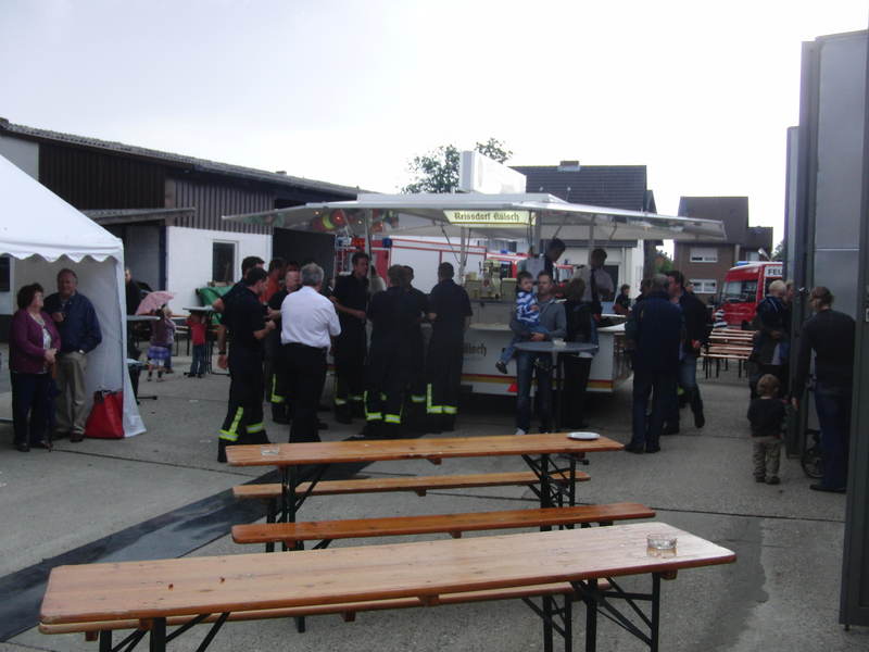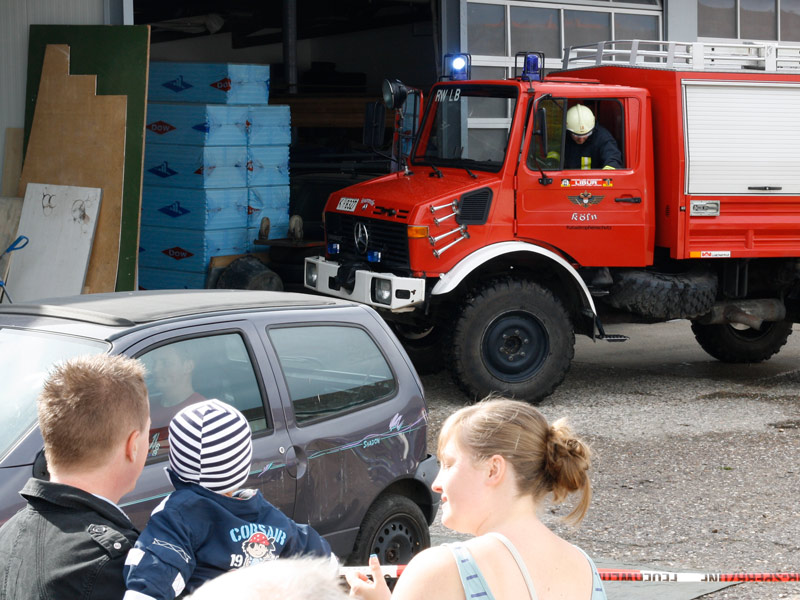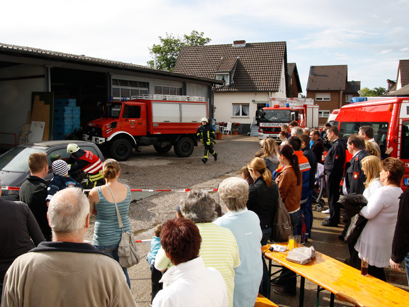 Feuerwehrarbeit findet bei jedem Wetter statt, bei einem Tag der offenen Tür ist das nicht ganz so sicher. Trotz eines kurzen, aber heftigen Regengusses am Nachmittag war unser Feuerwehrfest am Samstag den 18. Juni 2011 dennoch ein ansehnlicher Erfolg.Es kamen viele Gäste, um sich über die Arbeit der Feuerwehr, die Fahrzeuge, die technische Ausrüstung und über den vorbeugenden Brandschutz durch Rauchmelder zu informieren. Auch unsere neue Umkleide fand regen Zulauf: Ständig verschwanden neugierige Besucher durch die beiden Türen, um den