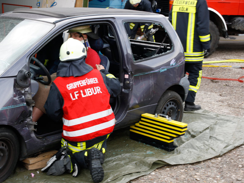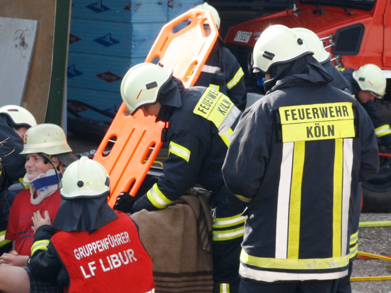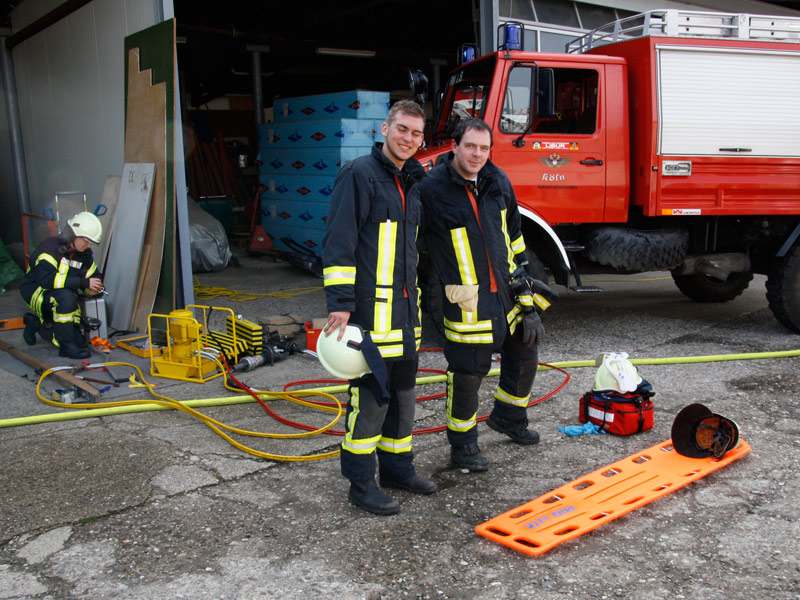 In der Cafeteria gab es zahlreiche selbstgebackene und sehr leckere Kuchen.Bei einer Schauübung, die wegen eines kräftigen Regenschauers nur mit etwas Verspätung beginnen konnte, zeigten die Kameraden der Löschgruppe Libur, was sich mit dem