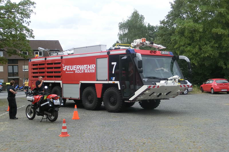 Viele Helfer und Planer haben seit Monaten auf diesen Tag hingearbeitet, gestern war er gekommen: Im rechtsrheinischen Süden von Köln fand die diesjährige Übung des Gefahrenabwehrbereiches Süd der Feuerwehr Köln statt. Neben den Löschgruppen aus Brück, Heumar und Rodenkirchen traten auch sämtliche Löschgruppen aus dem Raum Porz – Eil, Ensen-Westhoven, Libur, Langel, Urbach, Wahn und Zündorf – an, um die an sie gestellten Aufgaben zu meistern und sich durch gemeinsames Üben noch besser auf mögliche Ernstfälle vorzubereiten. Die verschiedenen Übungen fanden teils auf dem Bundeswehr-Gelände in Wahnheide, teils in einem Fluchttreppenhaus der Bahntrasse zum Flughafen KölnBonn und teils bei der Deutz AG statt.