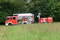 Unter diesem IBC-Container war eine Person eingeklemmt. Dank guter Ausbildung auf dem Feld der technischen Hilfe konnte die Löschgruppe Libur effektiv und schnell eine Befreiung des Patienten realisieren.